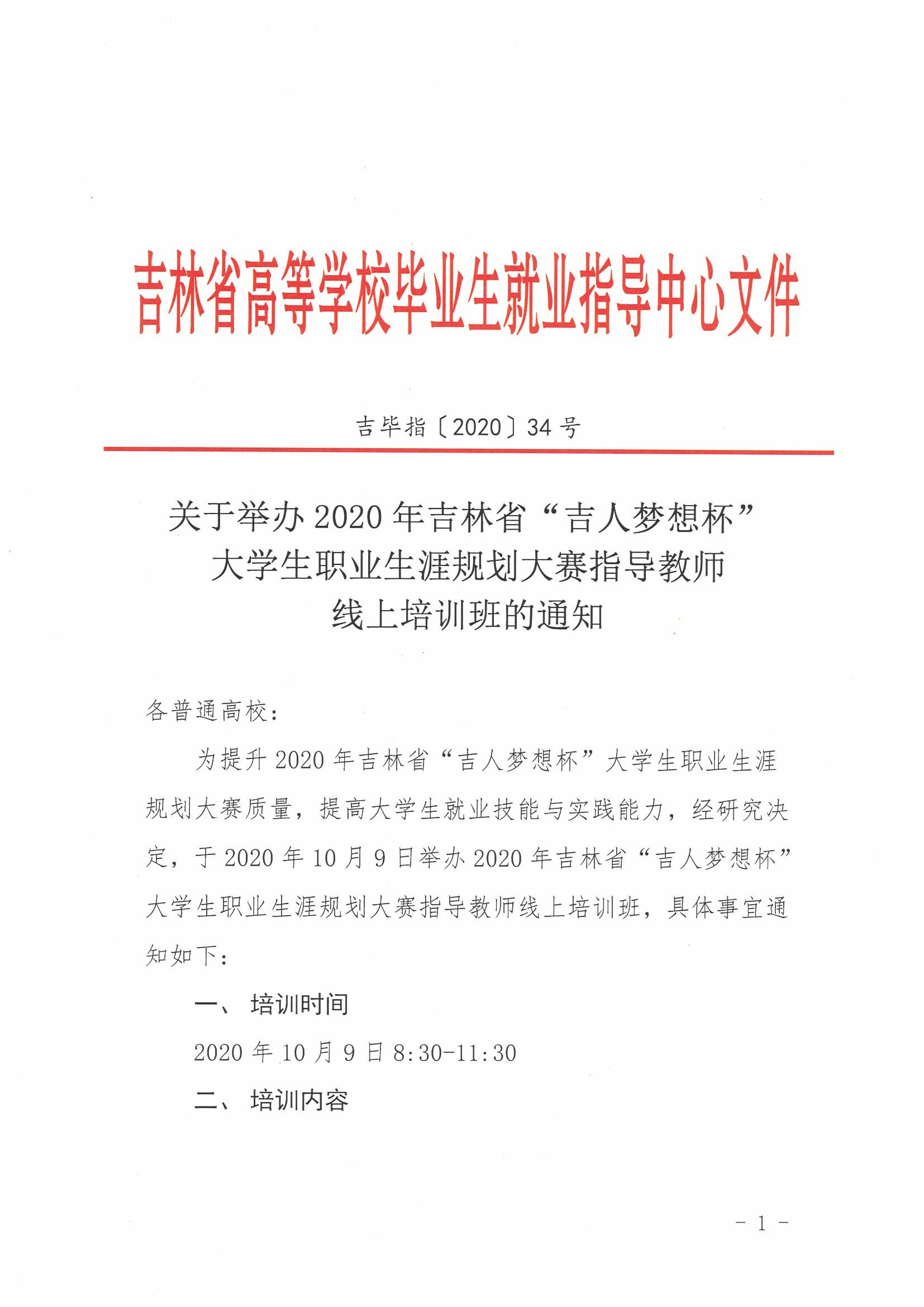 关于举办2020年吉林省“吉人梦想杯”大学生职业生涯规划大赛指导教师线上培训班的通知