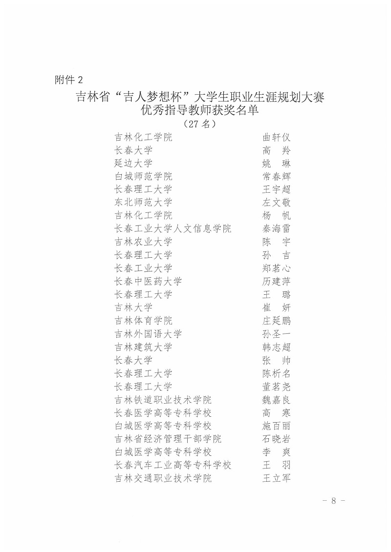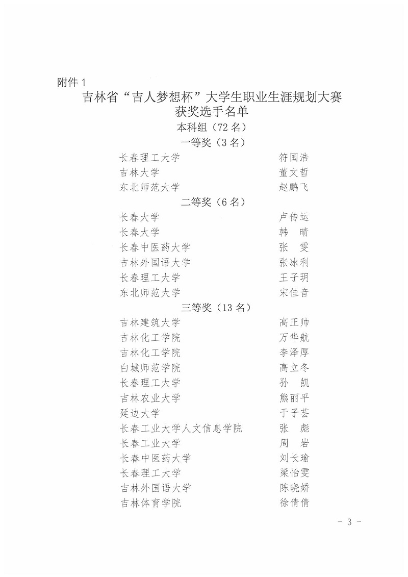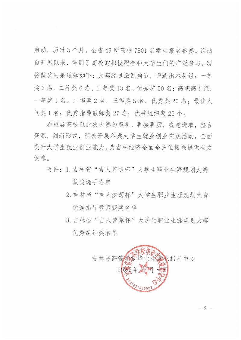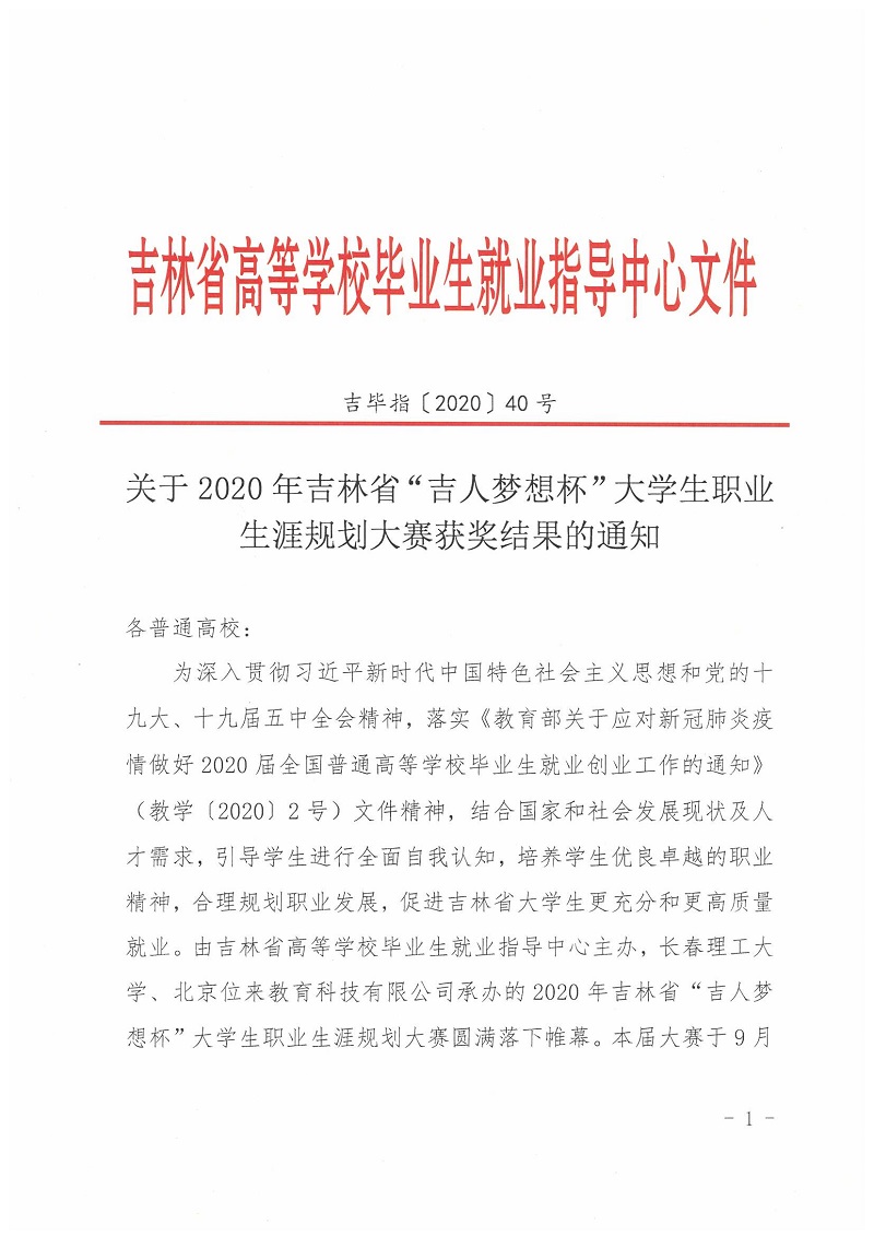 关于2020年吉林省“吉人梦想杯”大学生职业生涯规划大赛获奖结果的通知